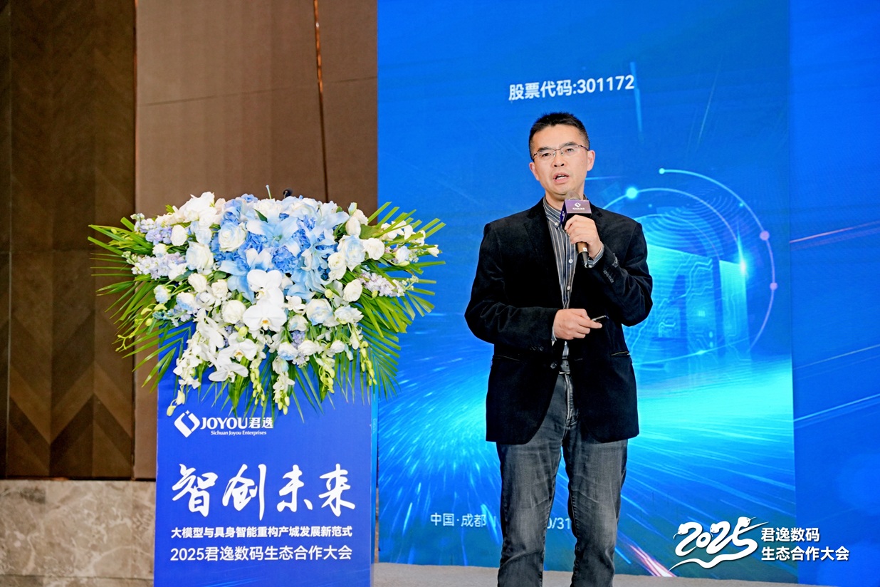 大会在君逸数码董事、副总裁杜晓峰的精彩致辞中拉开帷幕。他以“克制”与“拥抱变化”为核心,阐述了君逸数码在技术浪潮中的发展心态与价值逻辑。杜晓峰指出,AI与具身智能正带来颠覆性趋势,企业需聚焦核心使命,明确“帮什么人,解决什么问题”。他强调,“一个人可以走得快,但一群人可以走得久”,君逸数码将秉持开放共赢的生态合作布局,与伙伴共同站在“AI和机器人改变世界的前夜”,携手“做好活、处好朋友、过好日子”,共创聚合价值涌现的未来。