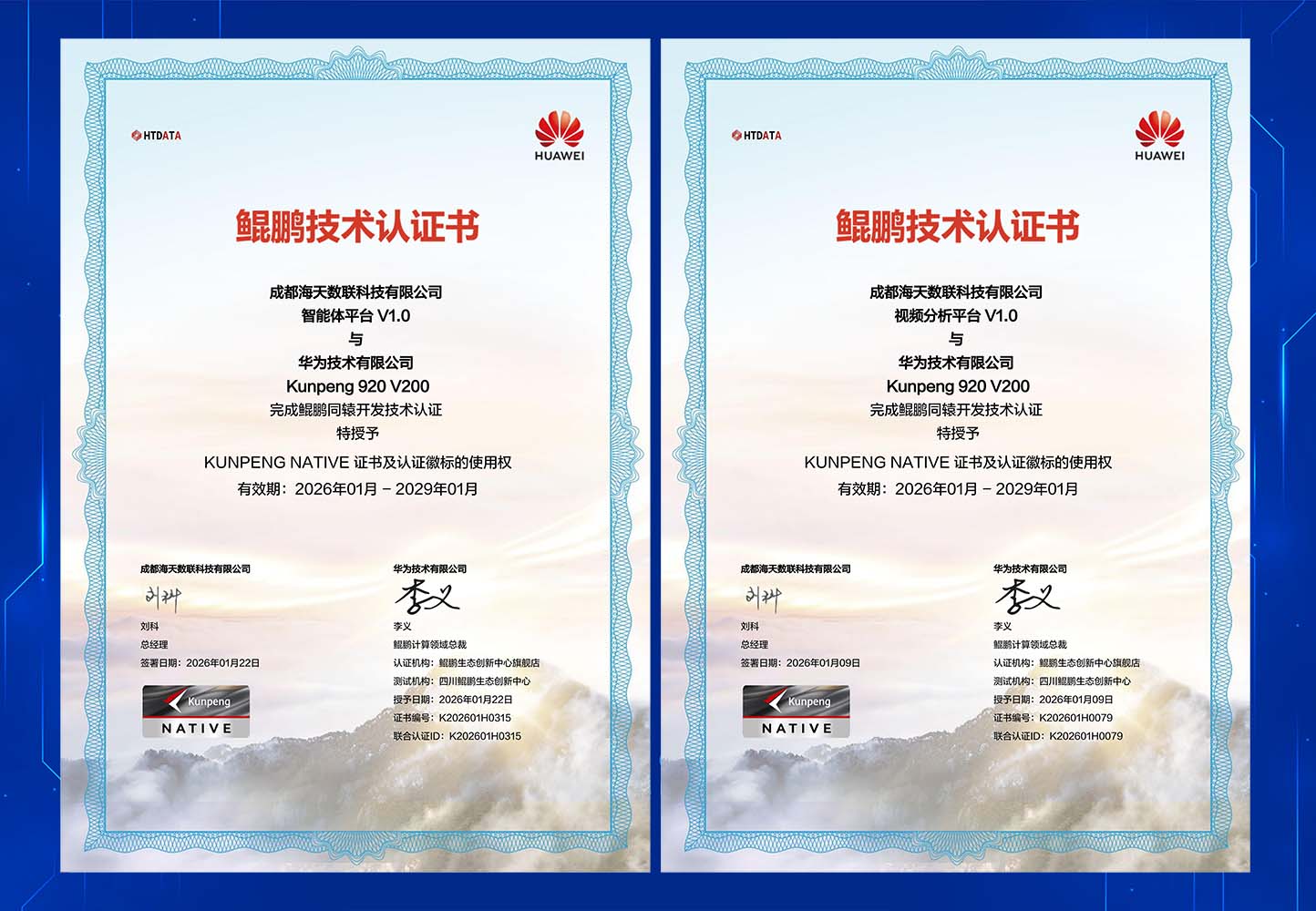 近日,君逸数码旗下控股子公司海天数联在核心技术自主化与生态融合领域取得重大突破:其自主研发的AI系列产品 “AI智能体平台HTS Agent ” 与 “AI视频分析平台HTS VA” 成功通过严苛测评与审核 ,荣获华为鲲鹏技术体系最高等级的 “华为同辕开发技术认证(Kunpeng Native)” 。这标志着两款AI产品并非简单的生态兼容,而是基于鲲鹏架构从底层进行的全栈原生设计开发 ,通过深度软硬协同优化,实现了性能与安全性的全面跃升,充分证明了其卓越的全栈级鲲鹏生态适配能力与技术实力。