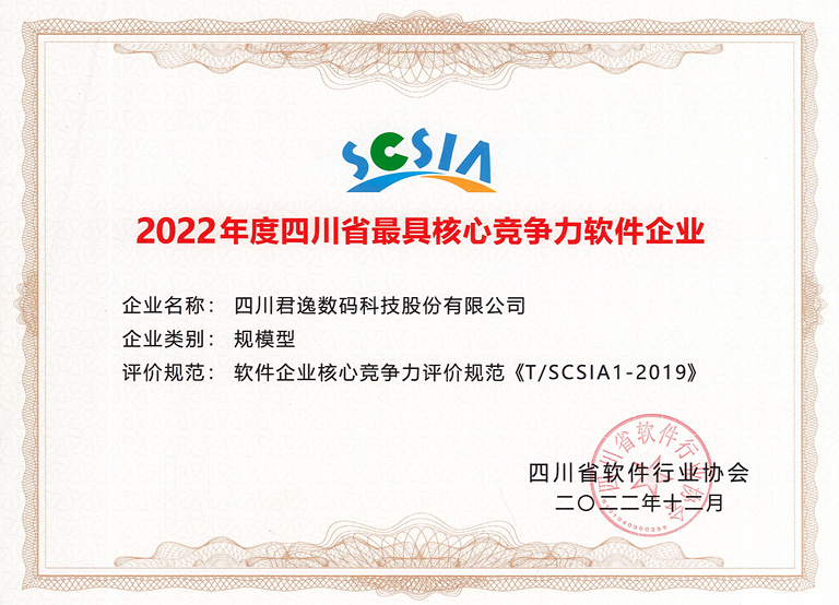 2022年度四川省具有核心竞争力软件企业