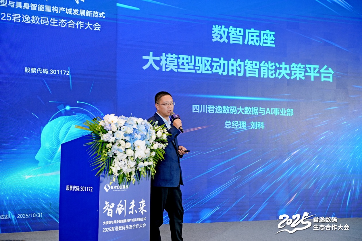 君逸数码大数据与 AI 事业部总经理刘科,以《数智底座:大模型驱动的智能决策平台》为题,直击政企 AI 应用落地的四大痛点:战略缺乏长期主义、数据受困质量与合规、技术面临融合与可信难题、组织存在认知与人才鸿沟。针对这些痛点,刘科详细阐述了君逸数码新一代 “数智底座” 的架构优势,该底座深度集成主流大模型,以 “大模型 + 智能体 + RAG” 的能力组合,结合可视化低代码流程编排与丰富工具生态,实现了智能决策的灵活部署与高效落地。他通过智慧城市、铁路、电力、军校等多个行业实战案例,印证了数智底座在政府、交通、电力、教育等领域的应用价值。